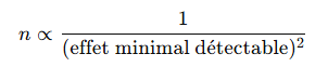Autrement dit, réduire de moitié le MDE multiplie par quatre la taille d’échantillon.
