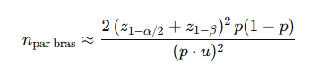 Pour un KPI binaire (par exemple un taux de conversion) avec :